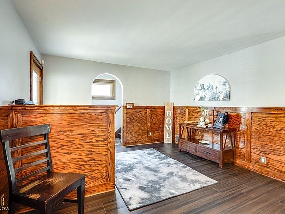 The kitchen, family room, laundry, and half bath were all remodeled in 2021, giving the heart of the home a fresh, modern feel. The kitchen is a great setup for anyone who loves to cook, with granite counters, stainless steel appliances, a sleek tile backsplash, tons of cabinet storage, a coffee bar, and a center island with counter seating and a beverage fridge. It opens to the family room, where a rustic wood accent wall adds warmth and keeps everyone connected. Right around the corner, the dining room stands out with a wood paneled wall, tin ceiling, and French doors that lead to a 700 square foot deck already wired with 220 electric for a future hot tub or spa.
