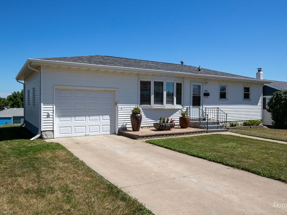 Updated ranch style home with 4 bedrooms and 2 bathrooms located in northeast Mandan. The main floor consists of 3 bedrooms with hardwood floors, updated full bathroom, living room with bay window, dining area and kitchen The basement family room has new recess lighting and carpet. An additional bedroom, bathroom and laundry room including the washer & dryer complete the basement. The attached garage with workbench has direct access to the kitchen. Enjoy yourself on the front or rear patio. Show off your green thumb with the garden plot next to the yard shed in the backyard. The large corner lot allows room for a detached garage. Buyer to confirm allowed garage size with the city of Mandan. The property includes steel siding, updated shingles, newer windows and flooring throughout, radon mitigation system, newer water heater.