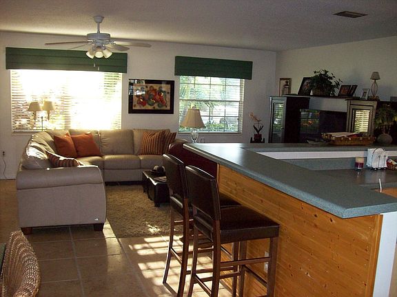 Home of BooBoo & Pumpkin Spacious open floor plan with Travertine tiles throughout home and screened porch except both bedrooms where there are Bamboo floors. Caged pool overlooks deep canal with no bridges to Gulf. Two car garage has many built in cabinets. Neighborhood Description No deed restrictions or HOA fees.