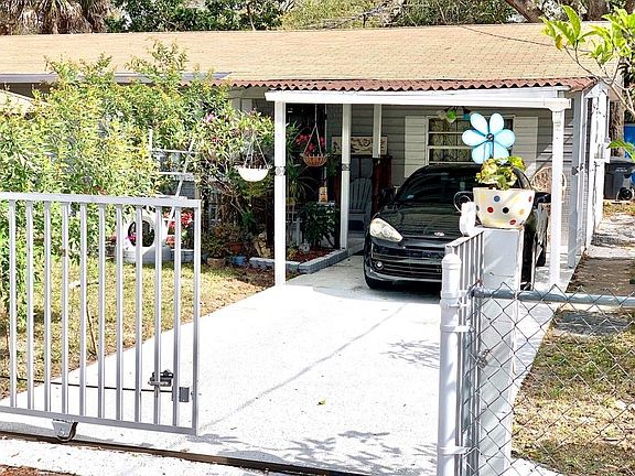Cozy ranch style home with lots of possibilities. Electronic gated entry welcomes you with 3 bedrooms, 2 full baths, 1,288 square feet of living space and a covered carport. Large living room, eat-in kitchen and spacious master bedroom. Large back enclosed porch with additional storage shed. Mature backyard with an abundance of aged fruit trees that include avocado, orange, lemon, green plantains, banana, mango and much more. Very private back yard with tons of shade. Perfect space for cook-outs & entertaining.