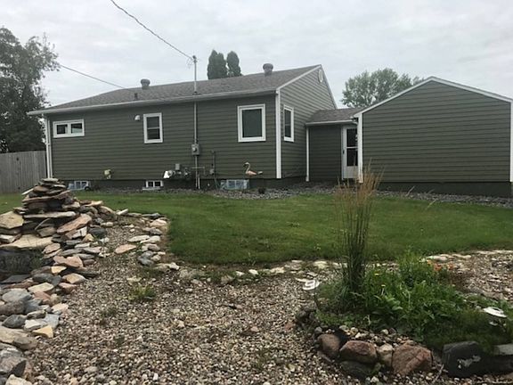 The delightful bungalow was built in about 1950 with 1089 square feet of living space with two bedrooms on the main floor and a full basement. The home is located in New Rockford North Dakota which is the County Seat of Eddy County located in Central North Dakota. The city of New Rockford is about 2 hours from the four major cities in North Dakota along with two smaller airports less than an hour away that provide passenger air service on major airlines. The home has the narrow hardwood floors in the living room, halls and two bedrooms, as you enter the home the glistening of the shiny hardwood really catches your eye. There is one wall in the living that also has vertical hardwood on it. The windows have all been replaced, this also includes the basement windows. The main floor bathroom has been totally renovated with new vanity and fixtures, the flooring in the bathroom is ceramic. The kitchen is an open kitchen with a number of windows which certainly gives you an abundance of natural lighting, the appliances were new in 2016 and are stainless steel. The basement has a large family room with ceramic tile, the laundry room is in this area as well with plenty of storage. The basement walls are covered with vertical wains coating which really brightens the room up. The backyard has had hours of landscaping and is surrounded by a wooden fence for privacy, there is an attached single stall garage.