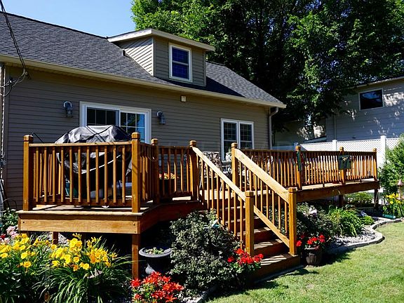 Check out this kitchen! In addition to the updated kitchen with custom cabinets and modern layout, this 4-bedroom home (with a 5th ''bedroom'' in the finished basement) has 3 full bathrooms, newer steel siding, double-hung windows, brand new shingles, maintenance-free fence, sprinkler system, a 3-car garage and it's all OUT of the 100-year floodplain, within a couple blocks of a school and wellness center.