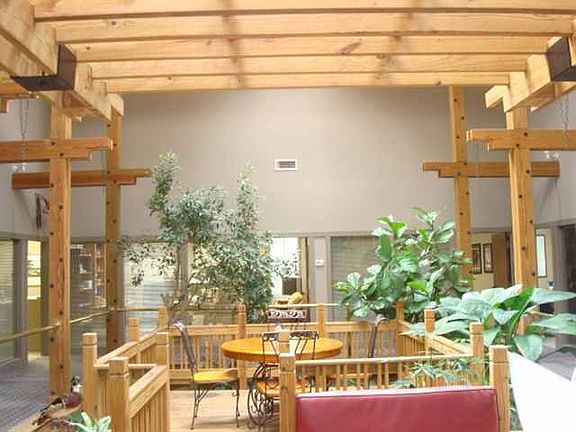 Large office space with various offices ranging from 300 square feet to 130 sq ft. All main offices share a large atrium with seating area that separates the main area. Each of these offices has a window facing the atrium. The atrium makes this space truly unique.