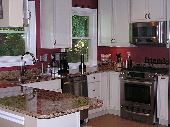 The charming front porch, great for those lazy summer evenings, invites you into a large living area featuring a gas fireplace surrounded by stone. Open to the dining room, this area feels spacious, yet warm, with gleaming hardwood floors. The fabulous renovated kitchen includes granite countertops, wood cabinetry, breakfast bar and tile flooring with easy access to the back yard’s rear patio and landscaped private yard. A large carport has direct access to the kitchen. This spacious home also includes on the main level a master bedroom with private full bath. There are also two more spacious bedrooms, a second full bath, and hall closet. The lower level features a spacious family room with a brick surround wood burning fireplace and an additional gaming area. A sunny fourth bedroom/office with closest sits just off the family room. Another full bath and enormous laundry/storage area that now currently serves as a fantastic gym, what a great idea!