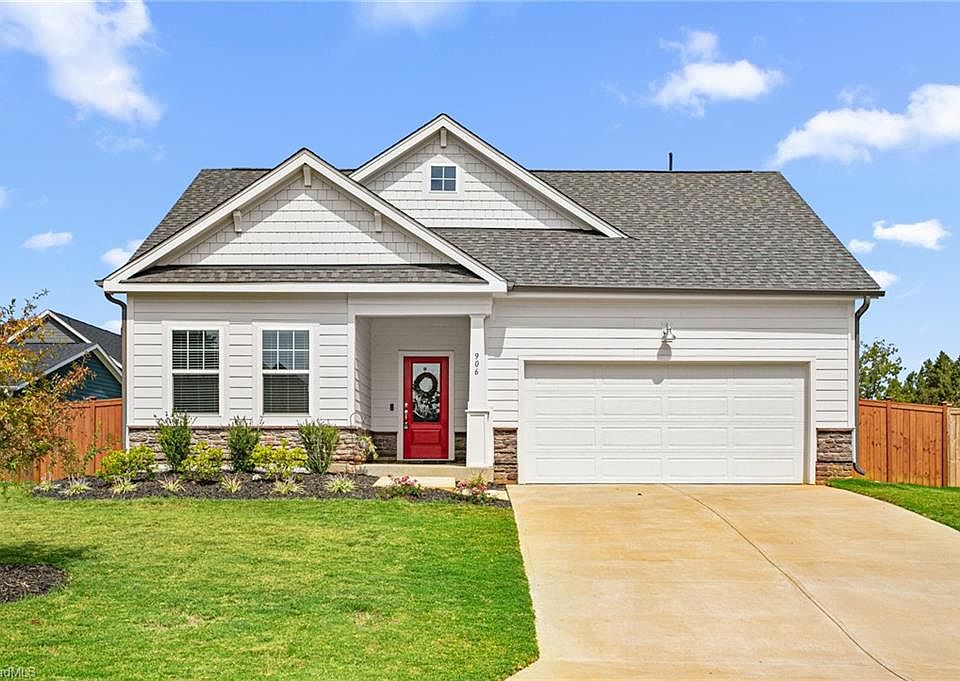 Step into this like-new 2024 single-level home in the highly sought-after, sold-out Tupelo Junction community. The popular Raindrops on Roses plan by Garman Homes has been gently lived in and is in immaculate condition. This home features a split-bedroom layout with 3 bedrooms and 2 full bathrooms, complemented by a bright, open floor plan where the spacious kitchen flows effortlessly into the main living area. All appliances stay and a 220V plug was recently installed in the garage, perfect for charging your electric vehicle! Relax in your private backyard retreat, complete with a covered patio and cedar privacy fence.One-Year termite bait system through Pest USA conveys as well. Enjoy community amenities including sidewalks, streetlights, a clubhouse, playground, and open green spaces. Ideally located near downtown Mebane and I-40, offering an easy commute to the Triangle, homes in this neighborhood are a rare find—don’t miss out! Correct Address: 906 Beeline Ln. Mebane, NC