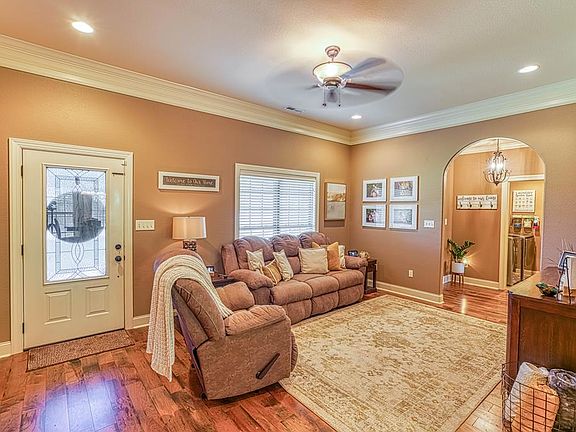 Check out this beautiful move-in ready 3 BR/2 BA home with a split plan. This custom build has a large eat-in kitchen w/gorgeous custom cabinets, granite counter tops, stainless appliances, and ceramic floors. Lots of extras including: high ceilings throughout, archways w/rounded corners, heavy crown molding, tankless hot water heater, and hardwood floors in the great room, master, and hallway. The master suite includes a huge walk-in closet and an amazing spa like bath w/double vanities/granite counter tops, jetted tub, and separate shower. Extra bedrooms are very spacious w/a bath between. Laundry room has cabinets and hanging space. Awesome curb appeal draws you in and the backyard has a new 6 ft privacy fence, covered back porch w/lots of shade, and an outdoor storage for lawn equipment. Don't miss this one!