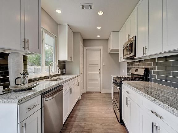 ~ Contemporary Stunning Renovation ~ Extremely Large Corner Lot ~ Inviting open floor plan ~ Light and Bright! Designer finish-outs, Recessed lighting, High ceilings, Laminate wood floors through-out the home. Updated gorgeous open kitchen comes complete with new white shaker cabinets, granite counter tops, stainless steel appliances: dishwasher, gas stove & built-in microwave. Perfect home for entertaining or play! Must See!
