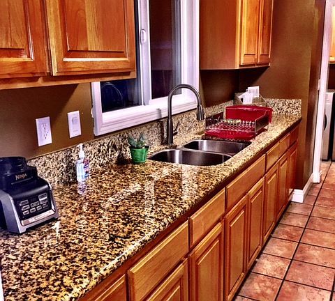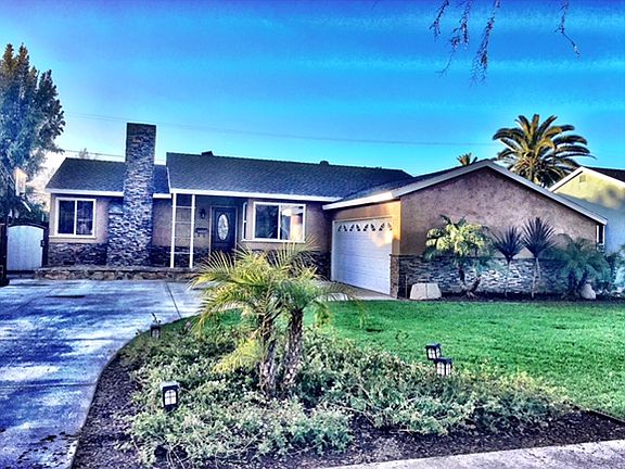 priced reduced, Park Santiago neighborhood. This home is in good condition and priced to sell. this 3 bed 2 full baths modern home with great curb appeal and lots of upgrade , greets you with an amazing look of stacked stone all in front of the house and chimney featuring new driveway , double pane vinyl windows through out the house, new landscape with sprinkler system in the front yard, the home has a raised entry that takes you into the formal living room with brilliant and bright open floor plan which features new subfloor plywood bamboo flooring, recess lighting and crown molding wood burning fireplace for those chilly nights to steps down past the living room to this huge family room for entertainment that has laminate flooring and access to the backyard the kitchen features modern cabinets with granite counter tops, all copper plumbing, separate laundry area, concrete patio with aluminum cover nice size back yard, mirrored wardrobes, wood fencing in back, ready to move in A must see! seller will credit buyer $5000 towards AC/unit