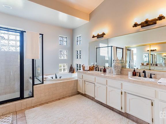 Located in Spring Meadow, this pride of ownership home features tile flooring throughout, vaulted ceilings, custom 8 foot doors and windows. Kitchen has been updated with granite counter-tops, double oven and stove top. A closet was added to the office which makes it a 4 bedroom and the actual square footage from a permitted addition is 2,464. With an open floor plan the kitchen and large family room/dining area gives plenty of space to relax and entertain. Designed with a split wing floor plan the master bedroom features a large master bathroom and new lighting and fixtures offering privacy with its own access through French doors to the backyard and covered patio. Backyard includes mature fruit trees of nectarine, orange Meyer lemon, apple pear and pomegranate. Additional features are custom magnetic double screen doors at the entry, new gage doors and openers, window tinting in bedrooms, great room windows and doors to the backyard.