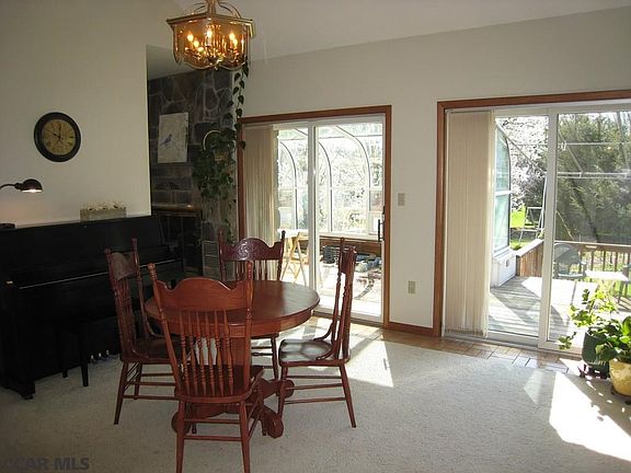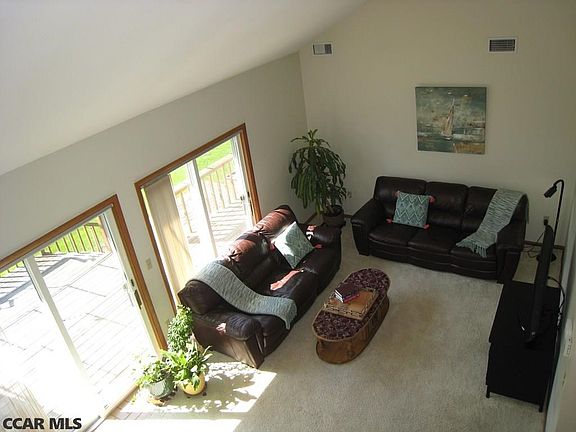 Seller offering $10,000 credit towards home improvements. This contemporary home with high ceilings and abundance of windows is located in desirable Greentree community. Enter the double foyer to a dramatic great room punctuated with sliders to deck offering panoramic views. Eat-in kitchen offers plenty of cabinetry with expanded counters for seating and open to family room with fireplace and slider to sun room which also leads to deck. First floor laundry/mud room conveniently located off of kitchen. Master bedroom with en suite bathroom, large closet and private slider to deck. Another spacious bedroom and full bath complete the first floor. The second floor offers a generous loft area, two bedrooms and full bath. The walk out lower level is complete with full bath, bedroom, open recreation room with fireplace and unfinished storage spaces. Close to schools, shopping, downtown, pool, parks, bike paths and CATA bus stop.