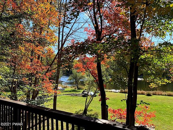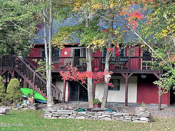 AMAZING LAKEFRONT MINUTES TO LAKE WALLENPAUPACK IN GATED COMMUNITY. Spectacular home just 2 hrs from NYC in one of the Pocono's finest award winning communities. This home has 100 ft of beautiful lake frontage on scenic Deerfield Lake in The Hideout. Remodeled on all 3 levels w/4 BRs and 3 full baths (one on each level) with a first floor BR, two BRs upstairs and one on lower level. Tastefully decorated w/brick fireplace (wood) and two freestanding fireplaces (propane) to create that perfect lake home feel. Set on pristine and level lakefront parcel w/firepit, private dock, kayaking and where wildlife and great fishing abound. Yr round amenities incl: public safety, golf, ski hill, ice skating, art center, teen center, gym, motorboating on Roamingwood Lake, beaches, club house and more.