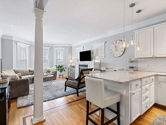 Welcome to 906 E Broadway #1, a bi-level condo in the sought-after City Point section of South Boston. The kitchen showcases a Viking gas stove, complemented by sleek white cabinets, tile backsplash, and hardwood floors. Large windows flood the space with natural light, highlighting the open-concept layout. Cozy up by the gas fireplace in the living area, enhanced by recessed lighting. The expansive family room offers versatility, serving as a potential third bedroom or additional living space. Ample closet space throughout ensures that storage is never a concern. This updated condo boasts two decks, a fenced-in yard, and a spacious layout perfect for entertaining. Enjoy the convenience of living close to Castle Island, M Street Park, East Broadway restaurants and shops, and easy access to the Seaport. With the added benefit of being at the beginning of the 7 bus route, this property offers the best of city living.