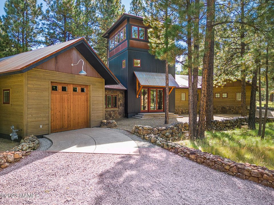 Welcome to serenity. One-of-a-kind home is a space to relax and be inspired. This beautifully hand-crafted mountain retreat in Lockett Ranch on 2.4 acres was built with high caliber construction and finishes and has been lovingly cared for. Located in a prime cul-de-sac location on a level wooded lot only minutes from downtown and hiking trails out the back door. Single-level home with the exception of the tower room. Two-bedroom includes primary bedroom with woodstove, guest retreat with full bath that opens to living area with sliding barn door. Potential 3rd bedroom conversion of existing bonus room that currently serves as art studio/fitness room. Living room features wood ceiling and beams and a fireplace on malapais rock hearth. Open kitchen and dining area with French doors to the covered outdoor patio. Kitchen features island with prep sink, huge walk-in pantry, soapstone countertops and GE Monogram appliances. Entry hallway with bench and storage. Energy-efficient construction with double wall framing and in-floor radiant heat system. Surround sound, Pella windows with built-in blinds. 2-car tandem finished garage with shop area and 240 volt electrical. Attic storage above garage and workbench area. Exterior is landscaped with drip system and hardscape fountain, patio area and fire pit. 1/12 share of deep well and 2,500 gallon storage cistern. Paved and plowed roads by HOA. Natural gas heat.