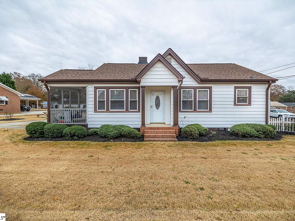 **HIGHEST AND BEST DUE TODAY, 12/8 AT 5:00PM** You don't want to miss this two bedroom, one bathroom charmer in Downtown Simpsonville, SC! PRIME location-Just minutes-Even walkable to Downtown Simpsonville, City Park, restaurants, and shopping! Pull up to the home from either end of your circular paved driveway-giving enough parking for your friends or family! When entering the home, you will enter into a spacious living room featuring a fireplace and large window-bringing in so much natural light! To your left, hangout on the screened in porch-Perfect for reading a book or having your morning coffee. To your right is the kitchen, featuring oak cabinetry with lots of storage space for all your kitchen needs. Continue straight down the hallway and find your master bedroom and additional bedroom, sharing a full bathroom in between with a stand up shower! Laundry is conveniently located next to both bedrooms. This home is move-in ready but still has opportunities for you to put your own personal touches, the possibilities are endless! All for UNDER $200,000!! Don't miss your opportunity, schedule your showing today!