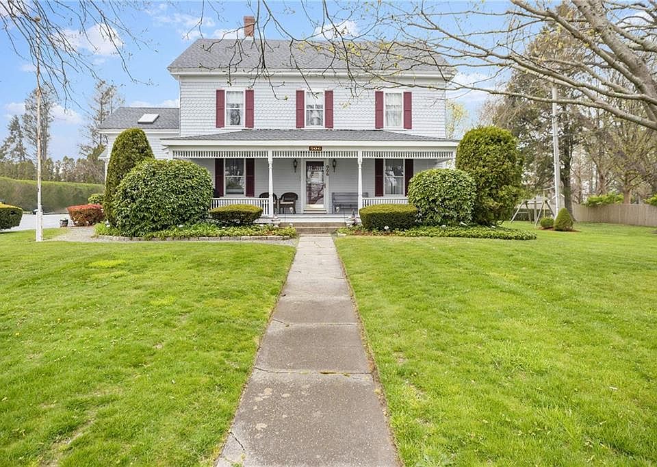 Incredible opportunity to live and also operate your business, this property is a rare offering. With more than 2600 sq ft and 4 bedrooms and 2 full baths the original farm house has been wonderfully maintained. The home offers original hardwood floors, a comfortable farmers porch and a flexible layout that may allow an easy transition to two units or extra space for a large family. Sited on more than an acre of land the property has two large garage buildings with a total of 4 bays and more than 2600 sq ft of storage space with 20 ft ceilings. In addition to the garage bays and offering supplemental income there is also a legal one bedroom studio apartment. Don't miss out on this versatile property!