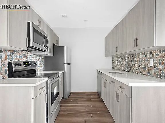 Residence boasts a generous floor plan with a sleek modern kitchen, premium appliances, in-unit washer/dryer hookups, and excellent closet space.