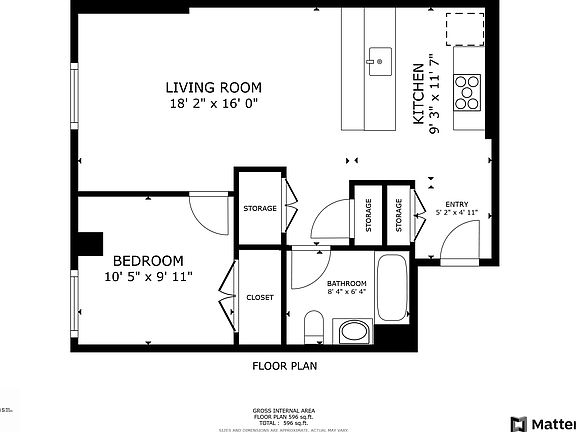 - Total interior livable area: 600 sqft