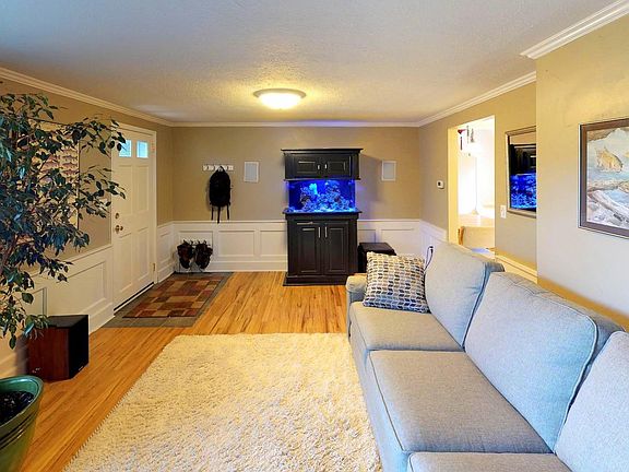 Clean and updated 3 bed, 2 bath home for sale in southside La Grande. This home features hardwood floors, light and bright spaces, updated windows and a newer furnace. Beautiful backyard for entertaining with deck, open and covered patio, large lawn and manicured gardens. Attached storage garage and small storage outbuilding. Relaxing sounds from Mill Creek frontage. Private treed setting in town! Close to EOU and hospital. Call today.