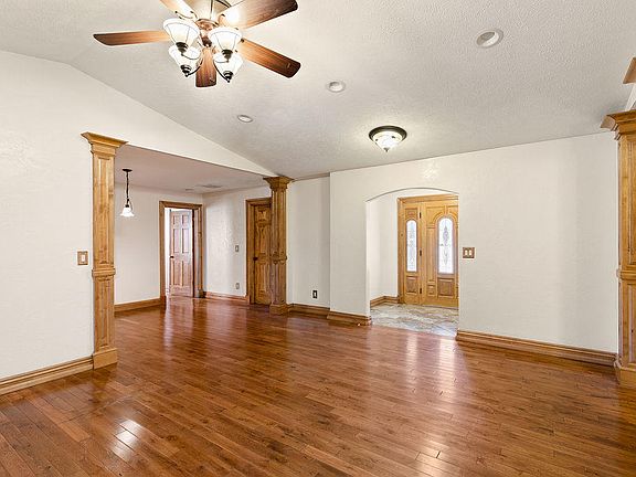 Custom, all brick home on beautiful 3 acres lined with fruit trees. South of Nixa, minutes from town, this home features 4 bedrooms, 2.5 bathrooms, formal dining room, and large office with built-ins right off the kitchen. Custom wood baseboards and 6 panel solid wood doors, wood burning stove in living room can heat entire house, floor to ceiling designer tile in bathrooms, hardwood flooring throughout. Spacious kitchen/dining combo offers custom cabinets, breakfast bar, granite counter tops and backsplash, stainless appliances & heated floors (kitchen only). Storm shelter under kitchen. Seller recently installed water softener.