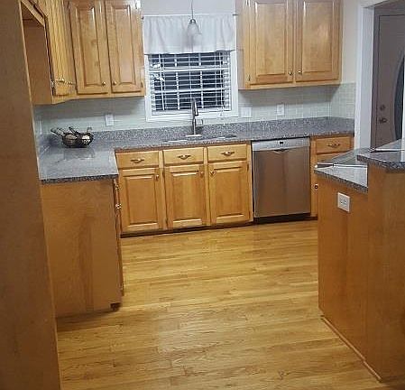 • Kitchen: Counter Tops-Granite, Floors-Hardwood, Cabinets-Stained, Backsplash-Tiled