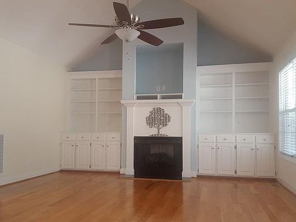 • Great Room: Entertainment Center, Floors-Hardwood, Ceilings-Cathedral, Ceiling Fan