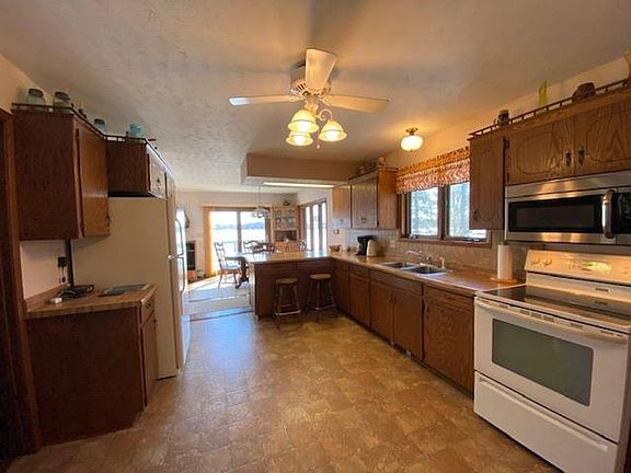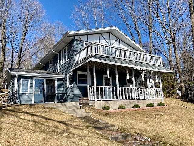 White Lake in Eastern Langlade County is know for it's clarity and great fishing. This picturesque home has beautiful frontage with a SE view and makes for stunning sunrise. Main living space has a bright feel with living and dining area that leads to a sunny deck overlooking the lake. Peaceful views throughout. 4BR 2BA and lower level walkout featuring a guest kitchen . Access the covered patio or 3 season room with a woodstove. Utility room is mostly finished and makes for additional space for a den/tv room. Detached garage has an addition which is great for snowmobiles or ATV/UTV storage. The lake front has a nice storage building next to the dock for. On municipal sewer and water. White Lake is a 154 acre full rec lake with max depth of 42'.