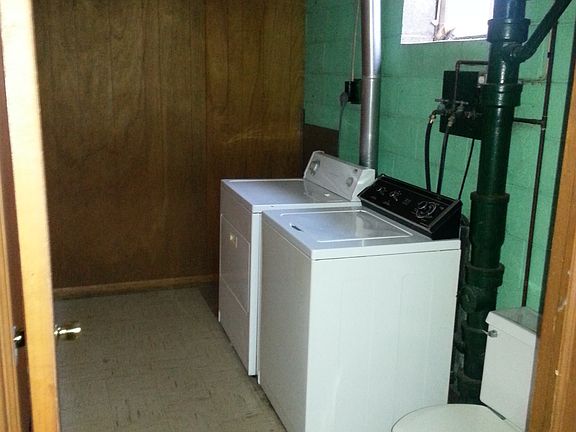 Brick ranch, 3 bedroom, one bath with garage and finished basement. Hardwood floors throughout. Kitchen, dining room, living room and breeze way between house and garage. Private back yard. Finished basement with laundry and work shop area. Off street parking for 2+ cars. Tenant pays for electric, heat, water, sewer, trash bags, and yearly heater maintenance contract. Tenant responsible for lawn care and snow removal. Tenant needs to provide refrigerator. Washer and Dryer will stay as a bonus, landlord will not repair or replace. No Pets No smoking Tenant responsibilities: heat, electric, sewer, water, trash, cable, internet and phone. Also yearly heater maintenance, lawn care and snow removal.
