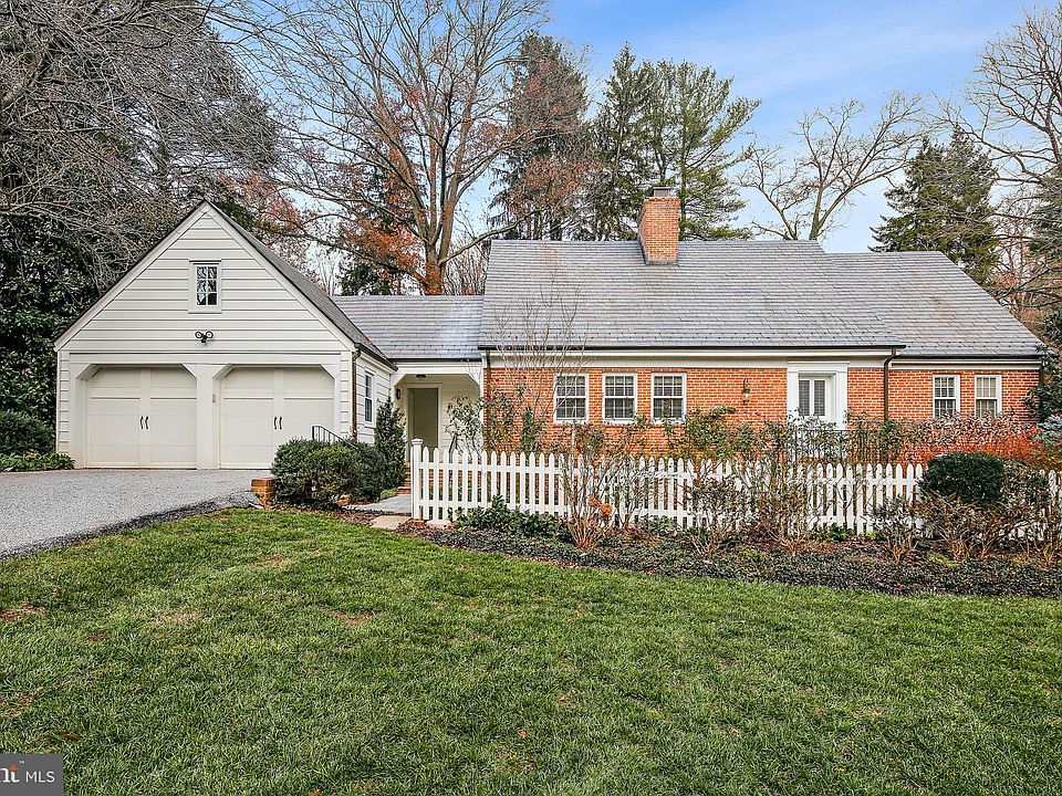 Charming and cozy brick Cape Cod with first floor bedroom, updated baths, Pella windows, HVAC replaced 2021, slate roof as well as beautiful hardwood floors throughout. Features include generous use of crown molding & chair rail. Stainless steel appliances & quartz counter tops in kitchen. The formal living room has wood burning fireplace and built-ins. The main level family room with vaulted ceiling, tile floor & French doors overlooks gardens and brick patio. This home is bright and sunny! Filled with natural light. The gardens are tranquil and beautifully landscaped. Every room has lovely views to enjoy. Convenient location & private setting. First showing Broker's Open Wednesday 12/7/22. Noon-2pm