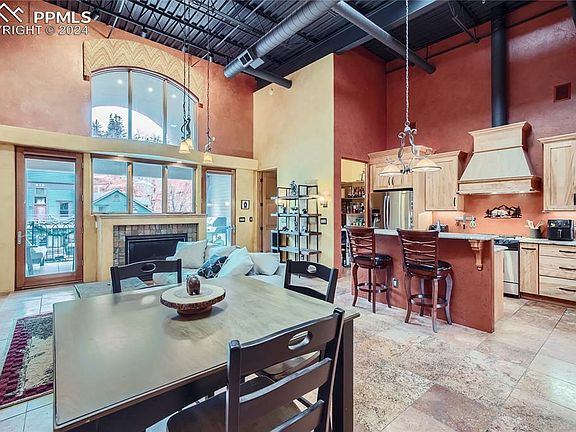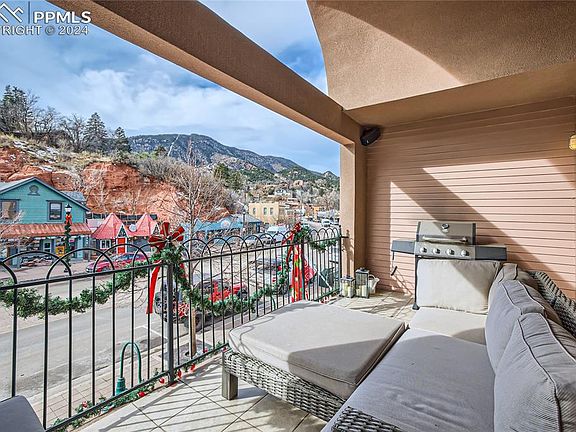 Downtown Manitou Springs Luxury Loft - The Crème de la Crème of Manitou Lofts. Exceptional and Rare Luxury Condo in the heart of Manitou Springs - Be at the center of it all, front row seat to the Coffin Races, Mardi Gras Parade, Pikes Peak Marathon, live music and more. From your second story private terrace, enjoy views of Pikes Peak and the historic downtown shops and restaurants. Prefer more privacy, retreat to the primary suite balcony and let the soothing sounds of Fountain Creek just below connect you back to nature. You are walking distance to everything Manitou Springs has to offer (music, art, wine and beer festivals, breweries, natural springs, dining, local artisan shops, and the COG Railway) and only a few minutes drive to Colorado Springs. You're located in an outdoor enthusiast’s dream, seconds to the Incline, hiking trails (including Barr Trail, Garden of the Gods, Red Rocks), bike paths, pickleball courts, public swimming pool, ziplines, and numerous parks. Condo features include private security gate, 3 desirable garage spaces, secure storage unit, elevator, vaulted industrial ceiling, oversized (4 hinge) solid wood doors, two primary suites, bonus loft, gourmet kitchen, gas fireplace, surround sound, skylights, and so much more. The building is part of the history of Manitou, starting as a bottling company in the 1880s, then the GM high altitude testing facility. Excellent year round home, vacation home or investment property. Call for your private showing.