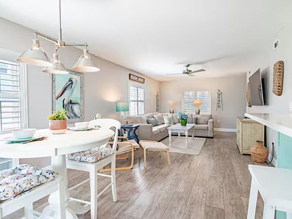 AVAILABLE NOV. 30 - DEC. 29TH. Live like you are on vacation! FULLY FURNISHED 2 bd./1.5 bath half duplex just 4 houses down the first beach block! This lovely unit is fully fenced and PET FRIENDLY. Totally remodeled with a new upscale kitchen and baths, upgraded fixtures and plantation shutters. Relax on the pavered porch with gazebo overlooking the generously sized private back yard while grilling out after a hard day on the beach. The kitchen features updated cabinets, new Quartz counters and stainless appliances. You will love the abundance of natural light as well as the ample seating at the breakfast bar plus a separate table with chairs. Walk to historic Flagler Ave., The Garlic Restaurant, many other shops, and eateries as well as the park featuring Pickleball, tennis, playground, and basketball. Beautifully decorated and furnished with newer furniture to give that classy yet beachy vibe. The bedrooms are upstairs with the main bath and a half bath downstairs. A king bed is in the primary and 2 full size beds in the 2nd bedroom. About the island...New Smyrna Beach, Florida is located on the East Central Coast of Florida. A cozy beach side town with 13 miles of white sandy beach, which has a drive and no drive section of the beach. a beautiful, natural environment. Relax and unwind in this cozy beachside town. New Smyrna Beach is the closest beach to all the national parks under an hour, Daytona Beach is 20 mins away and Cape Canaveral is under 45 mins. We can see launches from our 17 miles of white sandy beach. Two national parks enclose this Island Peninsula. We have great restaurants and some are directly on the water to spot manatee or dolphin. Great special events on Historical Flagler Ave and Canal street and every type of water sport your heart desires and well as arts and crafts shows, wine walks, and farmer's markets. Come discover this hidden gem on the central east coast of Florida. No hassle of turning utilities on...unit comes with flat fee utilities of $250 per month which covers power, water and sewer. Lawn care is $50 per month.