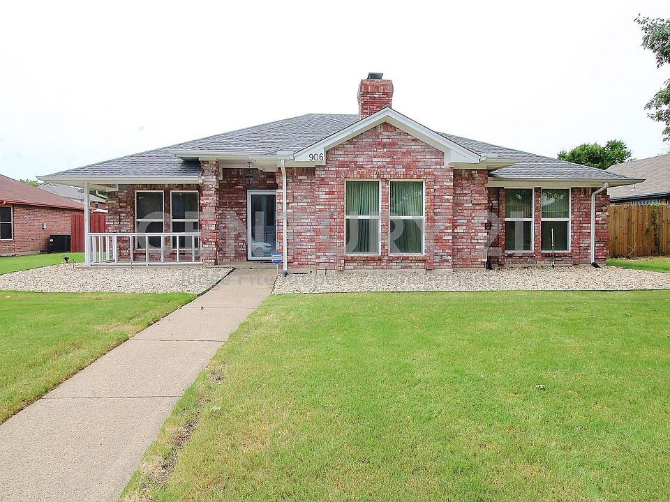 Welcome to this delightful single-story 3/2/2 home in Cedar Hill for rent. This residence offers a perfect blend of warmth and contemporary convenience, making it ideal for comfortable living and entertaining. The heart of the home is the spacious living room, anchored by a charming brick fireplace that provides a cozy focal point. Beautiful dark wood-look flooring extends throughout the main living areas, creating a rich, cohesive flow. The kitchen offers bright white cabinetry, granite countertops, and sleek stainless steel appliances, including a built-in microwave, dishwasher, disposal, gas range and a large side-by-side refrigerator. An inviting breakfast bar with seating seamlessly connects the kitchen to the breakfast area, which features a stunning vaulted ship-lap ceiling, providing extra charm. The primary bedroom offers a peaceful retreat with plush carpeting, a vaulted ceiling, and ample natural light. The primary bath has been beautifully refreshed, featuring a gorgeous vanity with dual sinks, modern lighting, a relaxing soaking tub, and separate shower. Step outside to your private backyard oasis. The space is fully fenced and includes mature landscaping, covered patio, and a convenient storage shed. Whether you're entertaining, gardening, or just relaxing, this backyard provides a great space for outdoor enjoyment. Don't miss the opportunity to see this charming property! Owner must approve all pets. Tenant must maintain water softener.