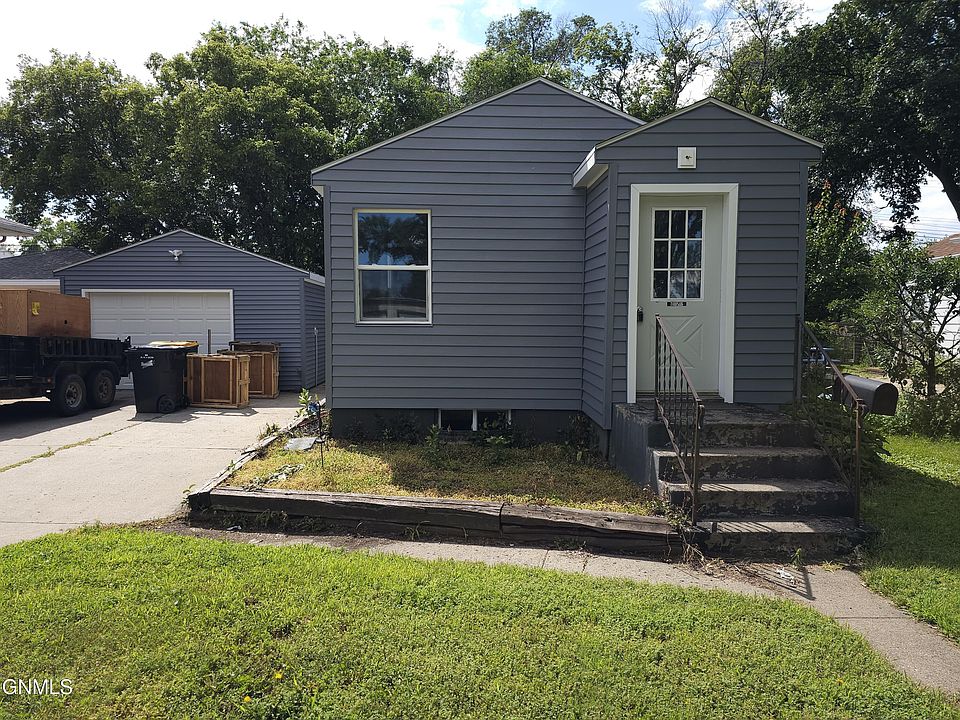 Great little investment property or affordable 1 bedroom home. Check the photos for a quick list of the updates completed so far. The home has a living room, full bathroom, and galley kitchen upstairs. Downstairs you'll find a half bath, laundry, and the bedroom. The detached single stall garage has storage potential and the backyard is small and manageable. It's not completed so if you're handy, you can save some money. It will not qualify for traditional loans in its current shape. More work will be done as we go. The owner is a licensed real estate agent in the state of ND.