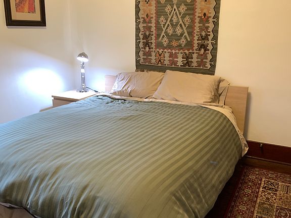 Furnished Bedroom The house is a beautiful 1915 Craftsmen. The shared space includes large living room, dining, den, newly remodeled chef,s kitchen, and lovely backyard. The bedroom is large (aprox. 13X13), two big widows, queen bed, desk, dresser, and closet. Semi private bathroom. The neighborhood is great blocks from Green Lake and the Greenwood shopping and dining district, 10 minutes to downtown, close to public transportation, easy access to freeways.The present housemates are Joseph the owner, mid 60s, massage therapist and his girlfriend Melissa. You would be the third housemate. We are clean and green, conscious, mature adults, and just nice people to be around. We are looking for similar person to be our housemate. Minimum 3 month lease Non smokers only