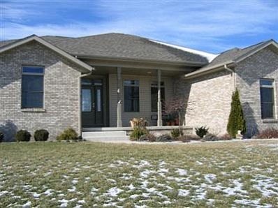 Contractors personal custom-built home, only 2 years young and better than new. Hugh ranch (2,400 sf) with great floor plan featuring volume ceilings and open staircase to basement. Situated on a landscaped 1+ acre lot in the country, yet convenient to highways, schools, shopping, etc. Lots of brick, hugh deck (14 x 35), 3 car sideloader garage, drywalled & painted. All appliances and window treatments stay. Immaculate home with too many upgrades to list. PRICE REDUCED. A MUST SEE!
