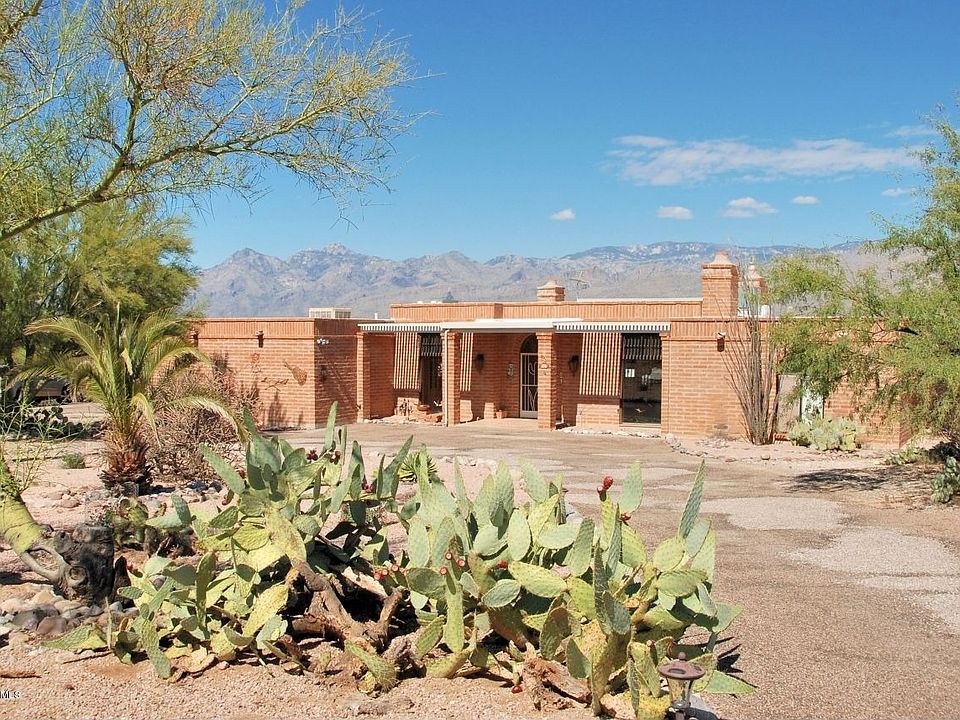 This Burnt Adobe Hacienda is on 3+ acres with Mountain Views from most windows.