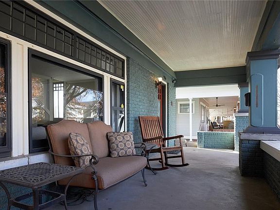 This Mesta Park prairie four square was built in 1916 and greets you with a large front porch on one of the most desirable blocks in the neighborhood. The home features original hardwood flooring throughout and a wood paneled fireplace in the living room. The floor plan flows into the dining area and opens into the kitchen, which contains lots of storage and a raised eat-in bar. The downstairs also features a home office, complete with floor to ceiling bookshelves and access to the back deck. The backyard has a sprinkler system, deck with brick in-lay walkway and a plenty of space for kids or pets to run around. Each bedroom is spacious with lots of windows that bring in plenty of natural light. The master bedroom is well equipped with a walk in closet, an updated bathroom and it's own private access to a balcony. House has a new roof, a fully restored exterior including new paint, guttering and siding/soffit. **New tile floor in kitchen, master bathroom and powder bathroom!**