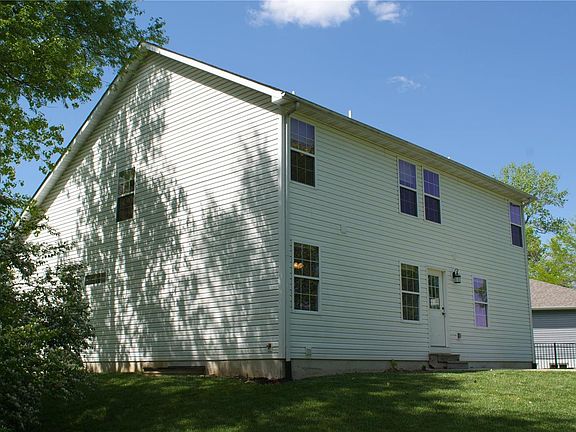 AGENT OWNED. This 4-bed 2-1/2 bath home is located on a beautiful .47 ace lot at the end of a cul-de-sac, which is wooded on two sides with a creek providing a semi-private park like setting in the middle of a subdivision! On the main level you'll find arched doorways, hardwood floors, & a living room with gas fireplace. The entry and dining area have spacious 10-foot ceilings. The main floor primary bedroom boasts a huge bathroom w/ separate oversized tub and double sinks. Upstairs you'll find 3 more bedrooms & a large family room providing tons of extra space. All 4 bedrooms have walk-in closets. Other features include main floor laundry, stainless appliances, granite countertops, & newly installed (2023) insulated garage door. The full unfinished basement is roughed in for an extra bath & has two egress windows that could provide for 2 future bedrooms, if finished. This 7-year-old home has been well cared for and maintained & is perfectly move in ready and waiting for your family!