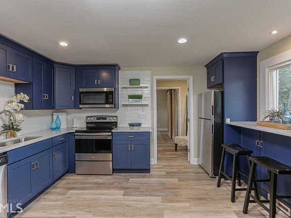 Totally Renovated Bungalow! An inviting Front Porch welcomes you into Bright and Airy Interiors. Hardwood Floors begin in an Open Family Room and continue into a Gorgeous Chef's Kitchen with Stainless Steel Appliances, Quartz Countertops, Navy Blue Cabinets, and Breakfast Bar. Unwind in the Oversized Master Suite with Sliding Farmhouse Doors and Spa-Style Bathroom. Two Spacious Guest Bedrooms share a Hall Bathroom with Custom Subway Tile Shower. Entertain with ease on the Rear Deck overlooking a Private, Fenced Backyard with Easy Maintenance Lawn. Complete Renovation with BRAND NEW Siding, Roof, and HVAC! STEPS to The Westside BeltLine Trail and Lee+White Food and Beverage District with local favorites like Monday Night Garage, Boxcar, and Wild Heaven Brewery.