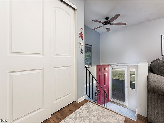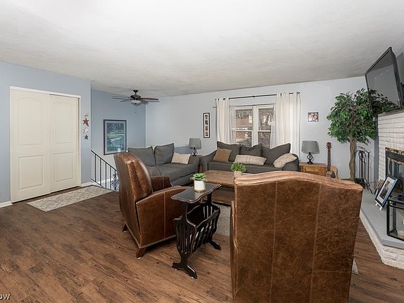 Adorable brick bi-level home in the heart of North Canton. As you walk in and head upstairs you enter a beautifully updated great room with LVT flooring, a wood burning fireplace with white brick surround and natural lighting filling the space. It flows into the dining room with plenty of seating and double doors that head out onto a two-tiered deck with a roof, providing more space for entertaining and shade. You enter the kitchen from 2 entry points, the great room and dining room. It also boasts of LVT flooring and newly painted cabinets. Continuing down the hall you will come to a first floor bathroom with new walk-in shower, oversized vanity and ceramic mosaic tile flooring. Three bedrooms are on the first floor each having large windows and ample closet space. The lower level has a generously sized rec room with another wood burning fire place with brick surround. Large windows let the light shine in throughout. A fourth bedroom is off of the rec room and has two large windows. The garage, although listed as a one car is the size of a 2 car. It has a great space for storage and a bonus bar that can seat several with a space to hang a TV. The outdoor has a fabulous space with poured concrete allowing for patio sets and extra parking. The 2 tiered deck is a great space that overlooks a beautiful yard and creek with an extra shed for storage and mature trees that create privacy.
