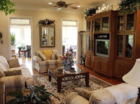 10 foot smooth ceilings in main living area with 4 piece custom crown moldings. Hardwood flooring everywhere but bedrooms. Custom Hickory cabinets. Large sunroom overlooking pond. Large covered porch 14 x 14 not covered in square footage. Too many features to list. A must see house.