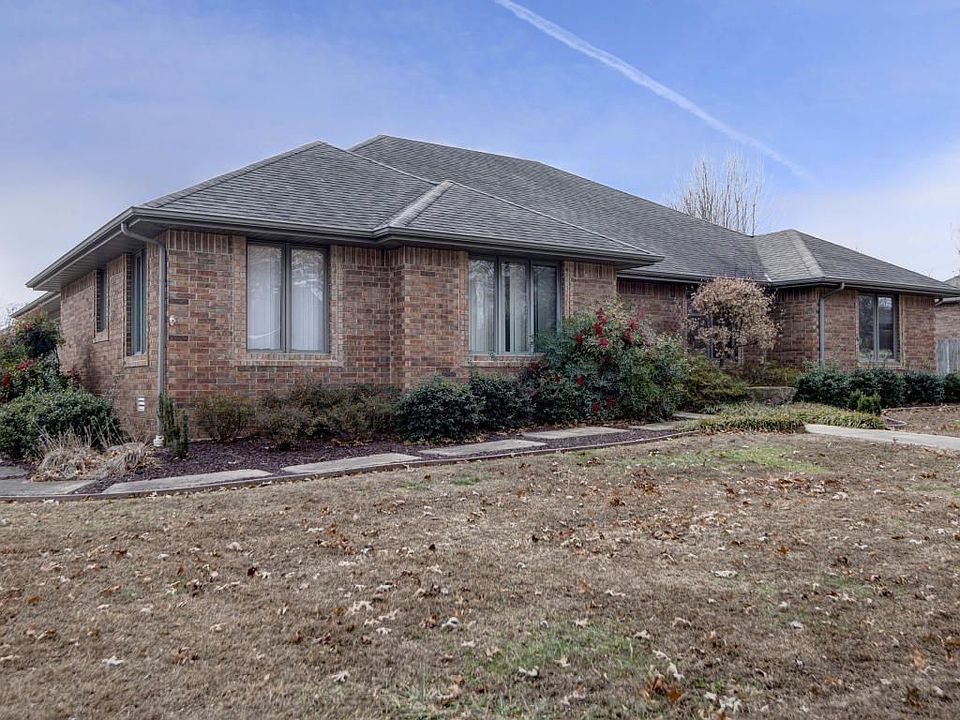 Don't miss this classic all brick home in Nixa's Parkmor Heights! This home features 3 bd, 2.1/2 ba, w/ a 3 car garage & RV pad, over 2200 st ft of living area, Great room has a brick gas log fp, vaulted ceilings, covered deck has access from Great room and Master suite, Formal dining or office, large open kitchen w/ New oven/range & disposal, large laundry room w/ 1/2 bath, fresh paint throughout, clean carpets, new fans and light fixtures . Master suite has a handicap tub/shower, large master closet, & french doors to the deck. There is a storm shelter in the garage & loads of storage shelves, large insulated storage building w/ power for a ''man cave''. Beautifully landscaped yard w/ trees, scenic rock creek, & flower gardens edged w/ rhubarb plants.