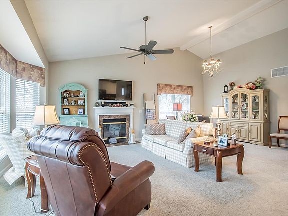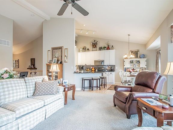 Carefree living in this beautiful VILLA located just minutes away from shopping, dining and so much more. The neutral decor, well kept home with lovely updates welcome you. Enjoy the ease of the association taking care of the mowing. irrigation system, leaf blowing, snow removal, some exterior maintenance and more. You can enjoy morning coffee in the GORGEOUS vaulted UPDATED kitchen with stylish white 42" cabinets, glass backsplash, stainless appliances, granite counter tops. Or enjoy your favorite book or TV show in front of the cozy gas fireplace sitting in the comfort of the bay window flanked with custom window treatments. Open floorplan, dining room - an entertainers dream. Master suite with luxury spa like bath. Second bedroom on the main level (updated carpet 2023) OR perfect home office. PLUS a finished lower level with full windows - rec room (includes billiard table), kitchenette, family room, bedroom, full bath and storage with built in shelves. Composite deck. MUST SEE
