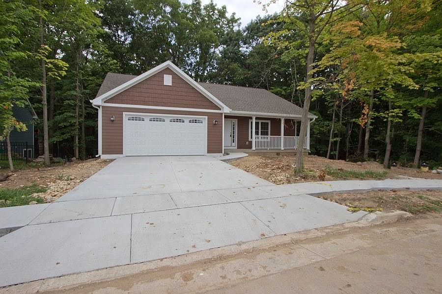 3 bedroom/3 bath new construction home on beautiful wooded lot. Buyer has time to make choices for cabinets, trim and other options. Open concept kitchen/great room with vaulted ceilings, sliding doors lead to a covered deck overlooking the ''forest'' like backyard, so peaceful. Partially finished lower level has full bath great room, potential for more bed rooms, covered patio. Cement driveway, seeded lawn and landscape complete the package. Can be ready 30 days after accepted offer.