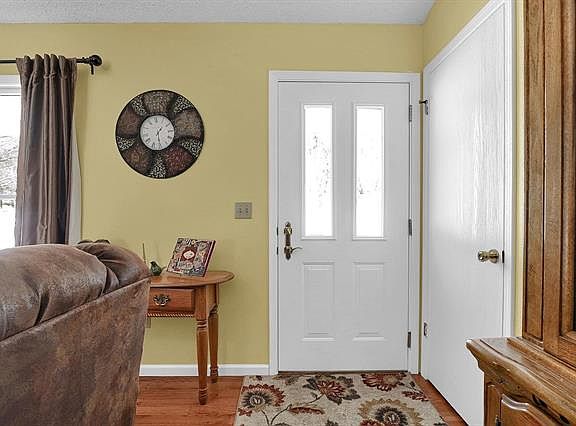 Charming! This well maintained ranch home sits on 2 acres and backs to woods for that privacy your looking for. When you walk through the front door you are welcomed by gorgeous hardwood floors through out the open area. The living room is spacious and cozy with the vaulted ceilings, and wood burning fireplace. The kitchen features solid surface counter tops, custom cabinets, and stainless steel appliances that will stay. The beautiful wood floors continue through the living room, hallway, dining room and kitchen area. There is a main floor laundry and a roomy master bath. The lower level is a walk out and has a lot of space for storage and with some finishing touches, it can be a great space to entertain. Enjoy easy access to the interstate from here! Schedule your showing today!