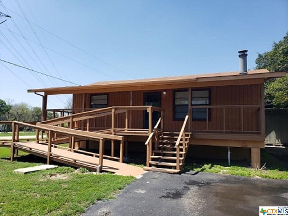 2 bedroom 1 bath Cabin on corner lot Located in quite neighborhood off of FM 725. HUGE Covered front porch! Great for entertaining and sipping that Sweet Texas Tea on a hot day! Has 12' X 24' Workshop that is already equipped with electric, as-well-as other upgrades such as work bench and Air compressor lines through out. This can remain a shop or could be closed off and made into an additional exterior Room. Home is Wheelchair friendly. This Home also comes with lake access and a neighborhood boat ramp! NO HOA and USDA eligible!