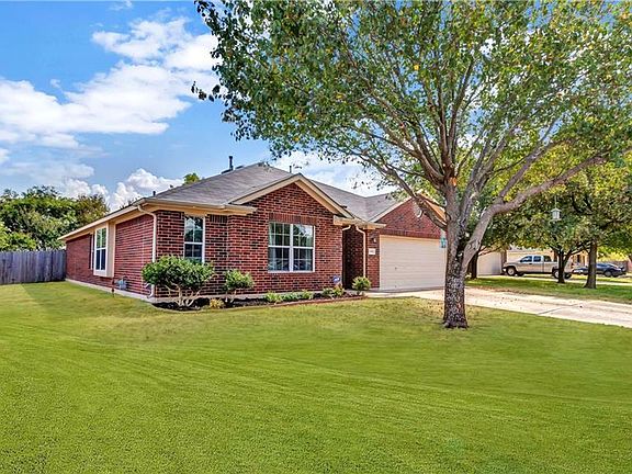 SUPREME Corner Cul-de-Sac Lot! New roof shingles 2019~.3 acres beautifully landscaped yard w/covered patio! Spacious 3/2 with flex/dining room, MIL Plan, Storage Shed, 2 Dog Runs, Open Kitchen w/Laminate Wood Plank Floors, Breakfast Area Ensuite w/Separate Shower & Garden Tub, Double Vanities, Walk-In Closet, Fireplace w/gas starter, Recent Int Paint,3 -sides Brick, Garage Opener, Expoxy garage floors, Convenient shopping, dining, schools, Highly Acclaimed Leander ISD!