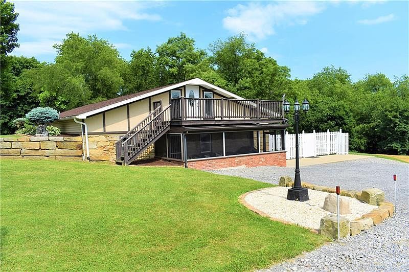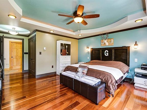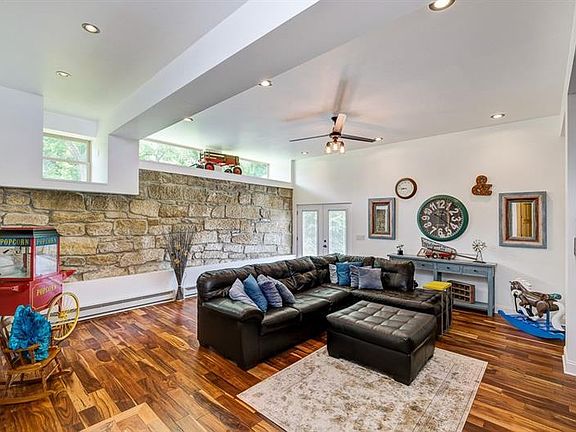 This beautiful four bedroom, two bath ranch is a one of a kind and a must see! The sunken living room boasts 11 foot ceilings, tobacco road acacia flooring, an electric fireplace and a 2 1/2 foot thick sandstone wall. The kitchen flows into the large dining room that also features a stunning sandstone wall. Off of the kitchen is a large pantry with a drink station. The master bedroom has a huge 10 foot x 5 foot walk in closet. The bathrooms have been newly renovated and the main bathroom features heated flooring. The jack and jill bathroom features a newly tiled shower. Enjoy the great outdoors on this 1 acre property with a two level backyard. The top level has a fenced in patio and the flat lower level has a 1 year old custom built playhouse that's fun for all ages! In addition to all of the cosmetic updates, this home is energy efficient, has a newer roof and all walls and ceilings are 5/8 drywall.