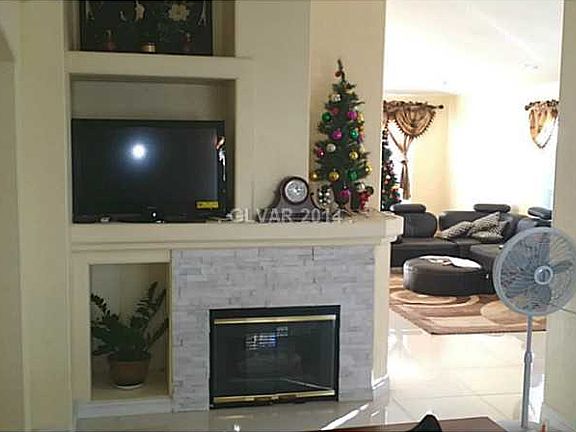 Single story house with separate living room and family room. Vaulted ceilings, open style kitchen, tile and hardwood floors. Kitchen with island, granite counter tops, some stainless steel appliances. Fireplace surrounded by shelving. Master bath with double sinks, walk in closet and master has slider to backyard. Backyard has covered patio and low maintenance desert landscaping. Fresh paint throughout house.