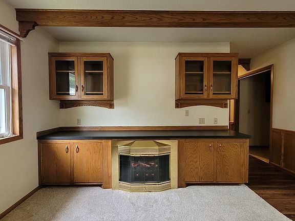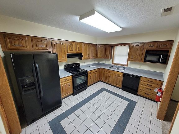 This 2-bedroom, 2-bathroom slab home (no basement), built in 1998, offers approximately 1,120 square feet of living space, plus an attached oversized two-car garage (about 670 square feet) and a detached storage shed. The home features a formal dining area off the kitchen, a living room with wood beam accents, custom built-ins, and an electric fireplace. Down the hallway, you'll find a laundry closet with washer/dryer hookups, a full guest bathroom, the primary bedroom with an attached full bath, a second bedroom, and an additional coat closet. The garage includes a workbench, storage shelves, and a separate storage closet with shelving. Outside, there's a small, low-maintenance fenced side yard and a detached shed with built-in shelves. Small pet considered with pre-approval ($25/month pet rent). Tenant responsible for all utilities and lawn care. Non-smoking property.