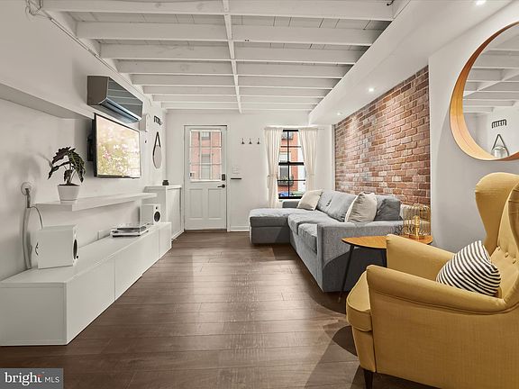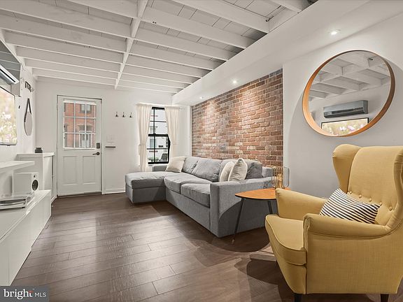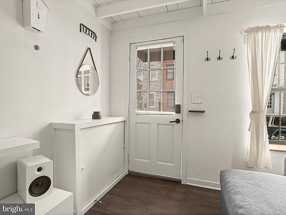 Step into this stunningly renovated 2-bedroom, 2-bath home, nestled on a quiet one-way street in the heart of Canton. Immerse yourself in all that Canton has to offer, bordered by the O’Donnell Square Park to the south and the charming Patterson Park to the north. This uniquely designed home offers you with a main level open floor plan adorned with a soothing neutral palette, laminate plank flooring, and an eye-catching wood-beamed ceiling paired beautifully with an exposed brick wall. Flow effortlessly from the inviting living room to the dining area, seamlessly merging into the bespoke kitchen. Discover culinary delights in the gourmet-inspired kitchen featuring brick flooring, sleek white cabinetry complemented by contemporary concrete countertops, classic subway tile backsplash, and open shelving. A custom-crafted island with a gas cooktop and pull-out extension provides ample space for additional seating, meal prep & nights in with friends. Step through the custom La Cantina bi-fold glass door onto the private brick courtyard patio, perfect for entertaining guests or nurturing your own urban garden oasis with herbs, flowers, or vegetables. The relaxation continues in the main level bath, boasting a clawfoot tub and modern fixtures for an elevated experience. Journey to the upper level loft-like sitting room or office area, illuminated by a skylight, where you'll find a bedroom with high ceilings and exposed wood beams. The primary bedroom offers peaceful slumbers with a breezy ceiling fan and sunlit windows. Convenience meets luxury with the upper level laundry and full bath completing this level. With numerous updates including a new washer in 2023, a replaced flat roof in 2023, tankless water heater, updated main level exposed brick wall, and bathroom remodel, this home is truly irresistible. Just two miles east of Baltimore's downtown district, the Canton neighborhood combines a trendy, modern atmosphere with a rich history as an industrial hub. Few minute walk where you can explore trendy boutiques, bars, bistros housed in renovated row homes, factory buildings, embracing the area's unique character and vibrant energy.